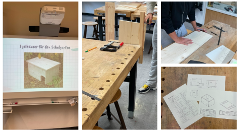 Zudem widmeten sich die Technikgruppe der 9. Klassen dem Schulgarten und ganz speziell dem Igel. Für diese wurden zwei Igelhäuser nach Anleitung der NABU erstellt, die im Schulgarten zusammen mit Laub und Gestrüpp platziert werden. Dort finden die Igel von nun an bei uns im Herbst und Winter einen sicheren Unterschlupf. In der Stadt ist dieser leider nicht immer ausreichend gegeben, wie gut, dass wir ein Herz für Igel haben! ;-)